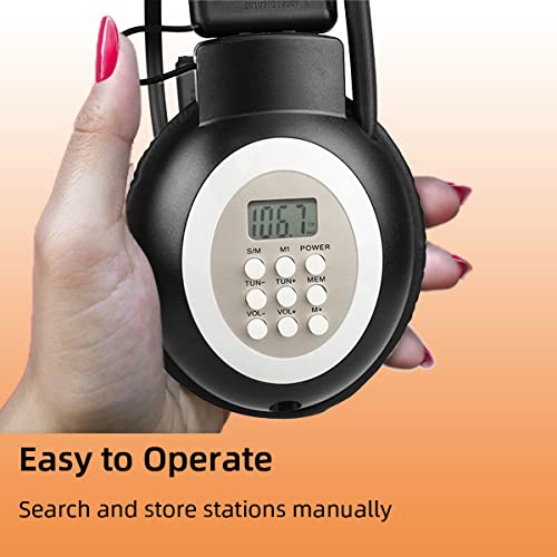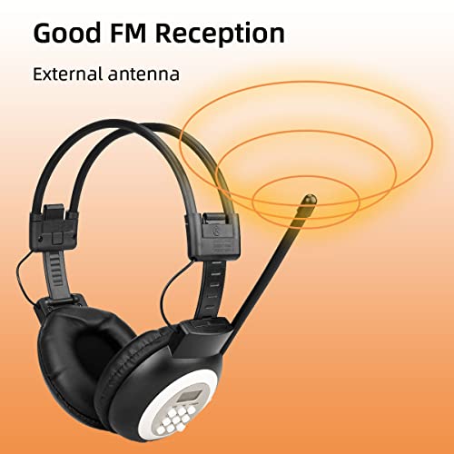 Retekess TR101 Radio Cuffia, Radio FM Pieghevole con Stereo, Ingresso AUX, Alimentazione a Batteria, per Riunioni Scolastiche (Nero)