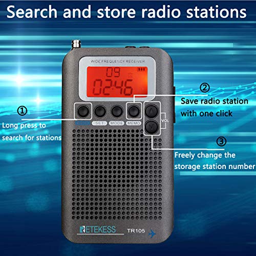 Retekess TR105 Radio digitale portatile Air Band Radio FM AM SW CB AIR VHF Radio Sintonizzatore Digitale con Funzione di Temporizzatore e Orologio (Grigio)