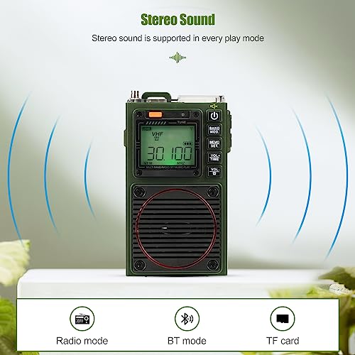Retekess TR111 Radio Multiband Bande, FM VHF AM SW WB Radio,Basse Stereo SOS Avviso,Controllo Telecomando per Applicazioni Intelligenti,MP3/TF,All'aperto