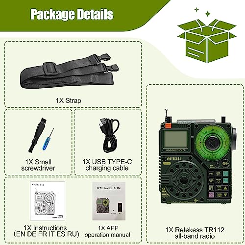 Retekess TR112 Radio Multiband Bande,FM VHF MW SW WB AIR Radio,Basse Stereo SOS Avviso,Controllo Telecomando per Applicazioni Intelligenti,MP3/TF,Regalo per la Festa del Papà(Bianco)