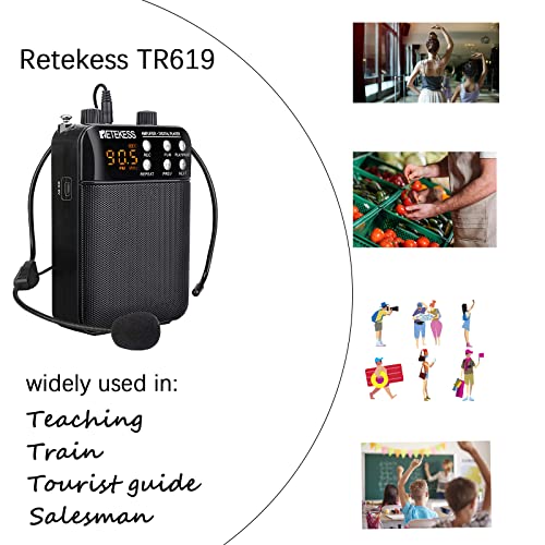 Retekess TR619 Amplificatore Vocale, Sistema PA, Microfono Personale per Potenziamento Vocale Ricaricabile, Supporta Registrazione, Scheda TF per Guida Turistica all'Aperto in Classe