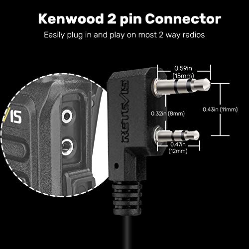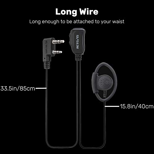 Retevis EEK012 Auricolare Regolabile a Forma di D con Microfono PTT Compatibile con Kenwood Two Way Radio BAOFENG UV5R 888S RT24 RT27 Walkie Talkie Auricolare (2 Pezzi)