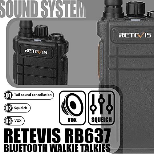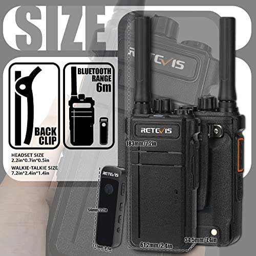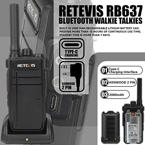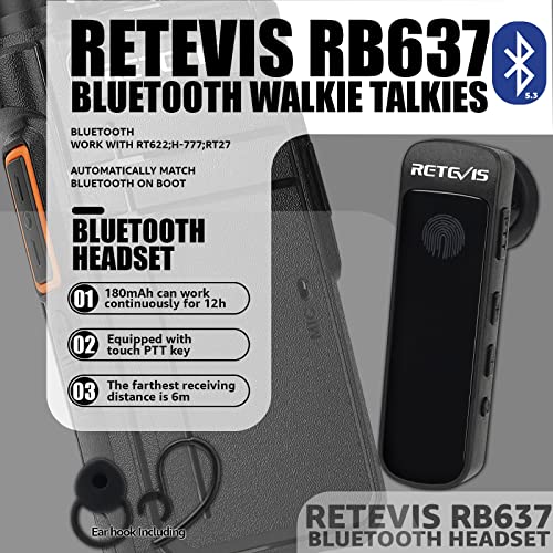 Retevis RB637 Bluetooth Radio Bidirezionale, Walkie Talkie con Auricolare Bluetooth, 2000mAh USB Ricaricabile, Torcia, Walkie Talkie a Mani Libere con Clone Wireless (nero, 1Pz)