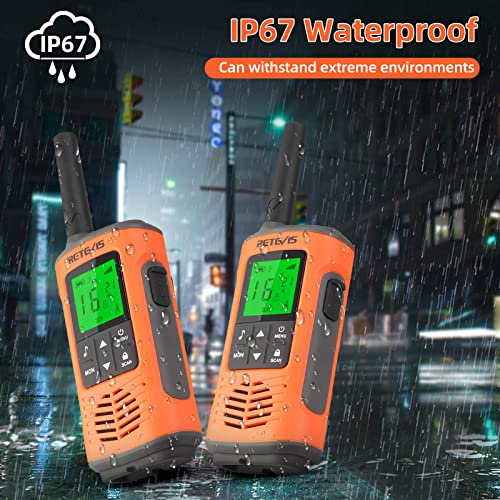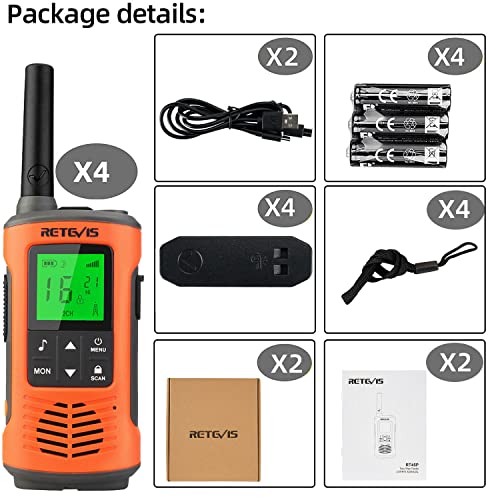 Retevis RT45P Walkie Talkie, IP67 Impermeabile, Ricaricabile,PMR 446 Senza Licenza, 16 Canali, VOX, Torcia LED, Allarme SOS, CTCSS/DCS,Walkie Talkie per Attività All'Aperto(4 pezzi)
