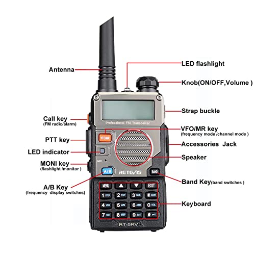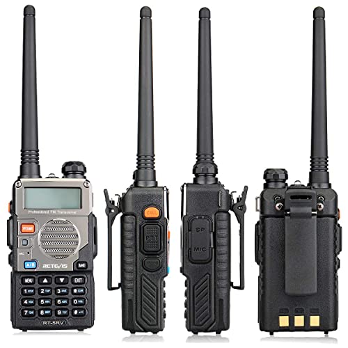 Retevis RT5RV Walkie Talkie Professionali Ricetrasmittenti 128 Canali CTCSS/DCS VOX Doppia Ricezione/Display/Banda Allarme Ricetrasmittente Professionale con Auricolare (1 Pezzo, Argento)