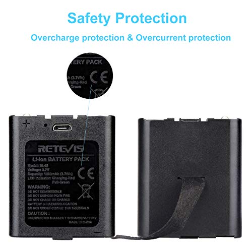 Retevis RT628 RT45 RT628B RT46 Walkie Talkie Batterie, Ricaricabile Batterie, 3,7 V 1000mAh Compatibile con Walkie-Talkie Retevis RT649, RT649P, RT649B, RT628,RT45, RT628B, RT46 (2 Pezzi)