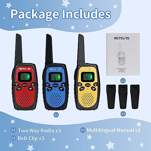 Retevis RT628S Walkie Talkie, Radio per Bambini in Modalità Provvisoria, Walkie Talkie Bambini, Radio Bidirezionale per Giochi di Famiglia, Campeggio, Avventura (3 pezzi)