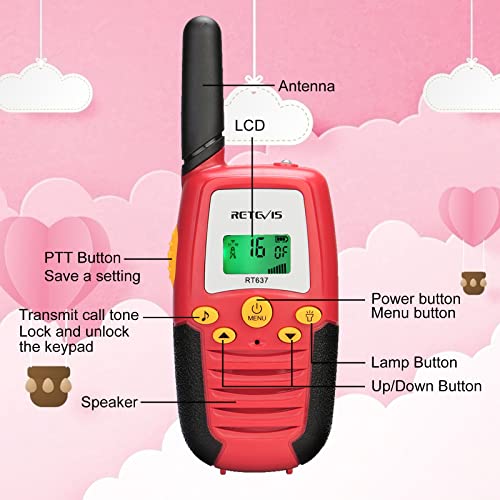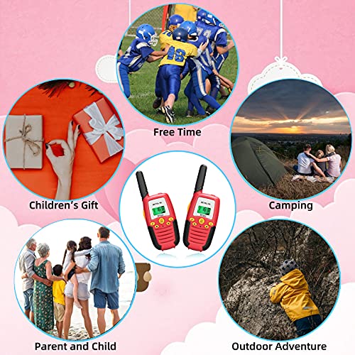 Retevis RT637 Walkie Talkie Bambini a Lungo Raggio, Regali Giocattolo Pasqua Ideali per Bambine di 6-12 Anni con Torcia, all'Aperto Avventura Vocazione di Equitazione all'Esterno (1 Paio, Rosso)