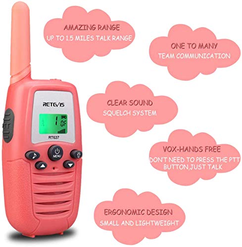 Retevis RT637 Walkie Talkie Bambini,Regali Pasqua per Ragazze e Ragazzi,PMR446 VOX Torcia Facile Operazione,Ricetrasmittenti Bambini per Giochi da Campeggio,Giardino o al coperto(Rosa,1 Paio)