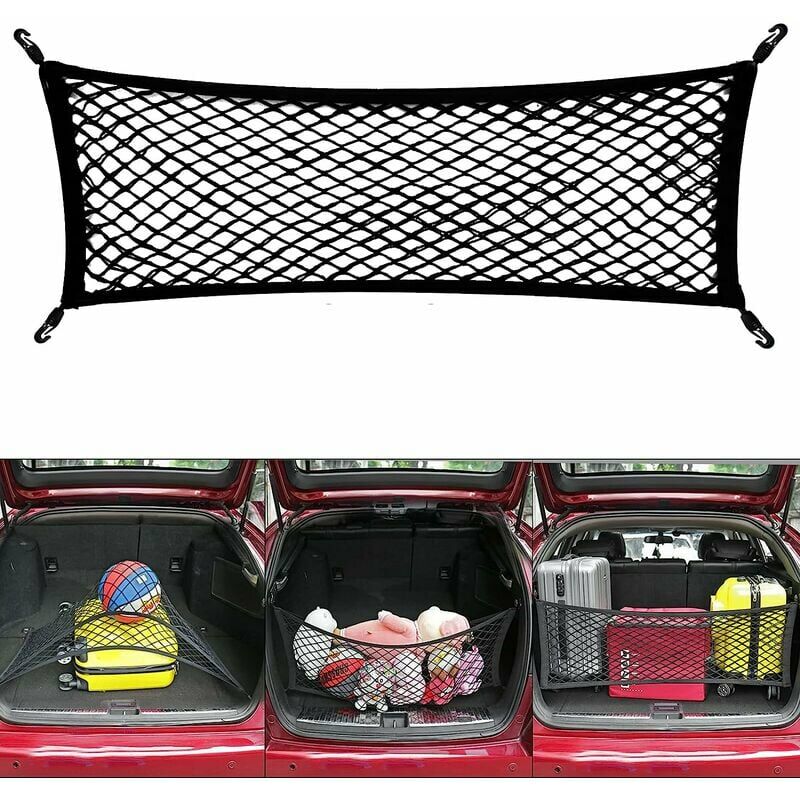 / p> 【Rete da carico elastica resistente】 -La rete del bagagliaio del SUV è realizzata in materiale di seta di lattice importato di alta qualità, che è durevole. Rete di stoccaggio del carico La superficie in rete completamente elastica può essere allungata da 35 x 12 a 66 di lunghezza. La nostra rete per la spesa si adatta alla maggior parte dei modelli di auto, ma sicuramente non a tutti. 【Uso multiuso】: poiché la nostra rete per auto ha abbastanza elasticità, puoi anche usarla per coprire oggetti separati per la conservazione di prodotti stabili. le