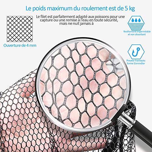 Materiale di alta qualità: la rete a struttura esagonale robusta rende la rete da pesca solida e durevole. Asta in alluminio retrattile, impugnatura in gomma antiscivolo e confortevole. I materiali speciali non danneggiano le squame di pesce e possono impedire efficacemente la crescita dei batteri. Realizzato in rete di nylon durevole di 4 mm, il retino di spaghetto ha una grande capacità di carico, la rete può sopportare fino a 17,5 kg e il Palo può sostenere fino a 60 kg.