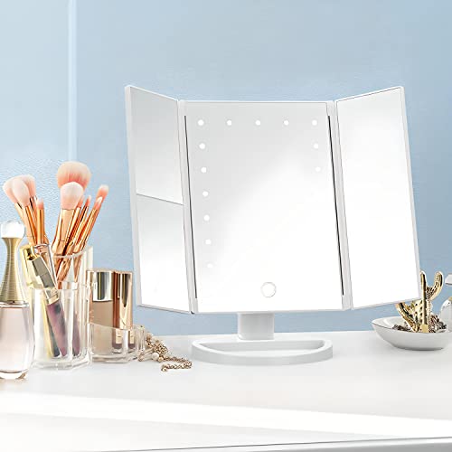 Visione panoramica: lo specchio da trucco è dotato di specchi centrali di alta qualità e sugli specchietti laterali che ti facilitano la creazione del trucco perfetto grazie alla perfetta vista panoramica sul tuo viso.