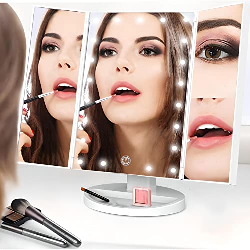 Design pieghevole - Se non hai bisogno dello specchio cosmetico, puoi piegare comodamente l'intero specchio pieghevole per proteggere l'interno da graffi e polvere..Dual Power - Lo specchio cosmetico utilizza due modalità di potenza. A casa, puoi collegarlo a qualsiasi caricatore USB da 5 V, mentre sei in viaggio sono sufficienti le normali batterie AA per alimentarli..Lavorazione robusta: lo specchio da trucco è realizzato in plastica di alta qualità, il che lo rende molto solido e durevole.