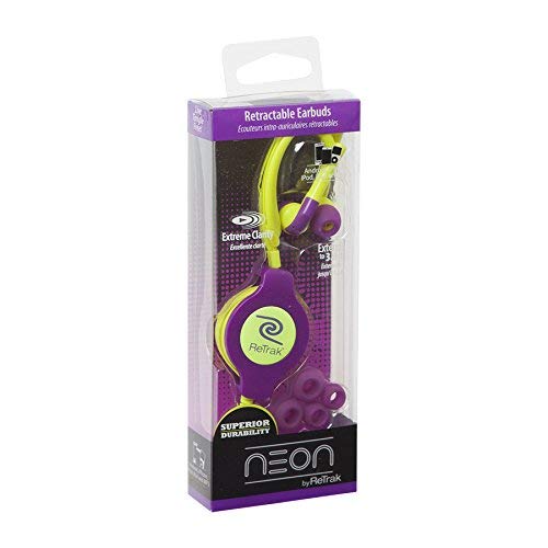 ReTrak EUAUDWRLYE Retractable Sports Wrap Earbuds - Neon Purple/Yellow
