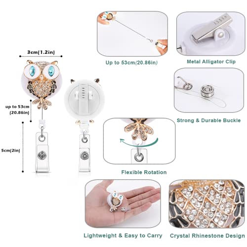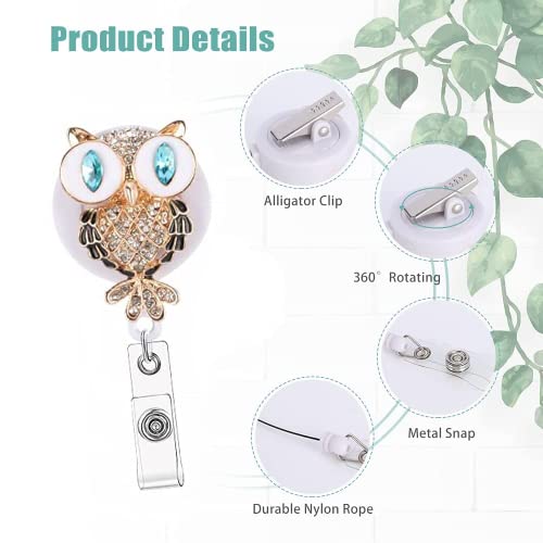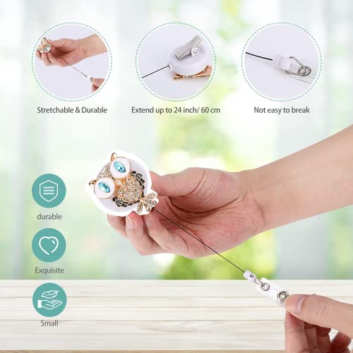 【Design Unico】:Clip a Bobina ha un bellissimo motivo di gufi in plastica ABS e materiale di perforazione, che è bello e resistente. La stampa è chiara, molto elegante e abbagliante. Aggiungi brillantezza al tuo lavoro quotidiano, porta il buon umore per il lavoro e lo studio e abbina facilmente la tua uniforme o maglietta. Decorazione perfetta per carte d'identità.
