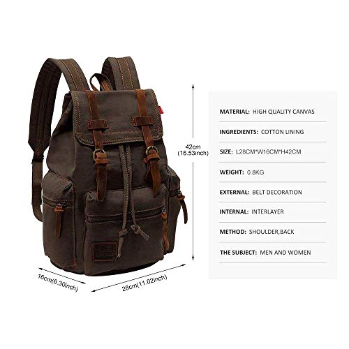 Retro Canvas Backpack Vintage Zaino in vera pelle Laptop Daypack Backpack School Backpack Borsa in pelle Backpack Waterproof Durable Shoulder Pack for Men and Women, verde militare (Verde)