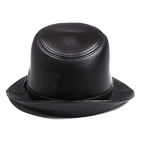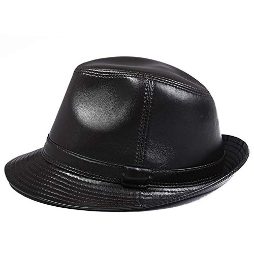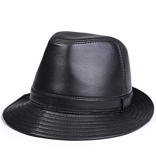 Retro Cappello Vera Pelle Uomo Jazz Fedora Panama Gangster Berretto Invernale Nero, Marrone