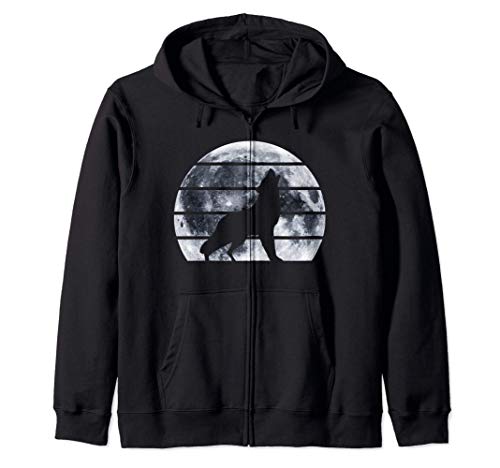 Retro Howling Wolf Wild Dog Full Moon Wolfdog Gift Men Women Felpa con Cappuccio
