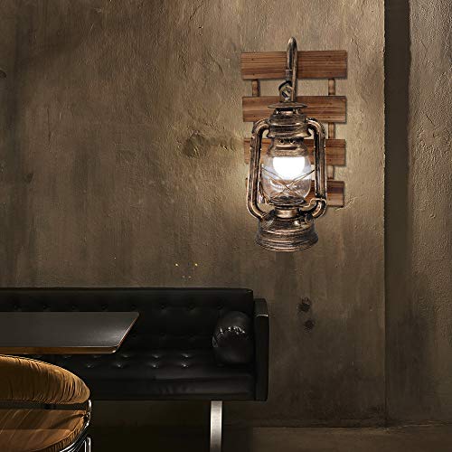 LLY Retro Lampade da parete, Lampada da parete industriale E27, Applique da parete in legno Luce Camera da letto Soggiorno Cafe Bar Ristorante Applique da parete per interni