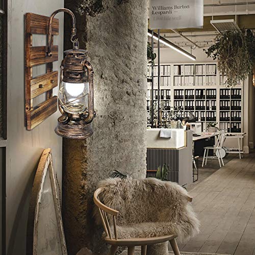 【Design retrò】 La lampada da parete combina moderno e vintage. La base in legno, il gancio in metallo e la lampada a cherosene danno a questa luce un aspetto retrò che si sposa bene con qualsiasi arredamento moderno e non è mai fuori dal tempo.
