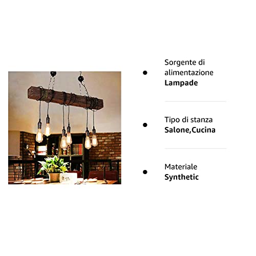 Retro Lampade Sospensione Stile Industriale D'epoca Appesa Legno Metallo Lampadario E27 * 6 Altezza Regolabile Cucina Pranzo Salone Loft Rustico Soffitto Luce Goccia