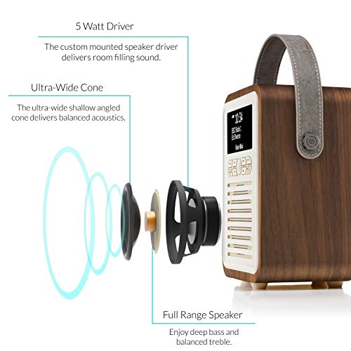 VQ Retro Mini Portatile Radio DAB/DAB+ e Radio FM co 60 Preimpostazioni, Digitale Sveglia Radio Vintage Con Altoparlante Bluetooth MP3, USB, AUX Porta - Noce