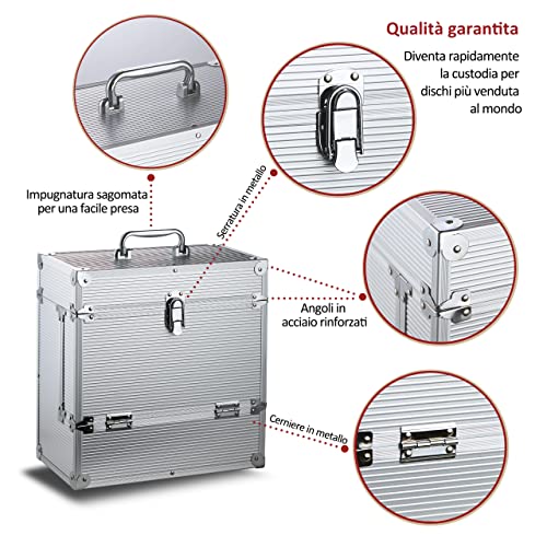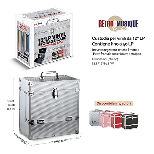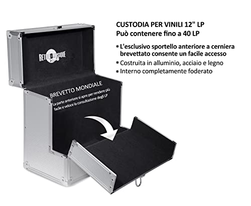 Retro Musique Custodia in alluminio per dischi in vinile da 30,5 cm, con esclusivo sportello frontale per un accesso migliore ai propri dischi