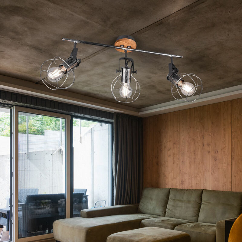 Descrizione Vintage o retrò? Non importa, perché questi faretti attireranno sicuramente l'attenzione nella tua casa! Il faretto moderno crea una perfetta combinazione di legno e metallo e garantisce così una buona dose di comfort. Con il suo alloggiamento decorativo in metallo, la lampada completa ogni soggiorno e camera da letto moderni ed è adatta non solo per l'illuminazione di base, ma è anche perfetta per mettere in scena accessori e mobili. Le teste girevoli possono essere allineate in modo specifico. Il faretto a 3 luci è alto 28 cm e largo 60 cm. Con la fantastica combinazione di legno e metallo in nichel antico, la lampada si adatta perfettamente ai concetti di arredamento moderno ed è un vero highlight per gli appassionati di vintage. dettagli apparecchiodiv > • Tipo di lampada: plafoniera • Materiale: metallo • Colore: argento anticato • Spot mobili • Grado di protezione: IP20 • larghezza x altezza x profondità in cm: 60 x 28 x 14 • prese: 3x E27• Lampadine incluse: sì