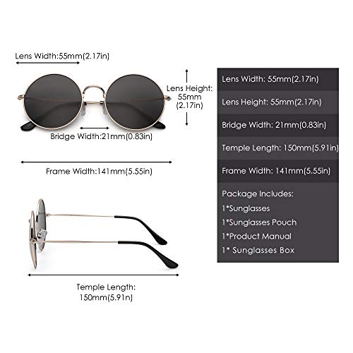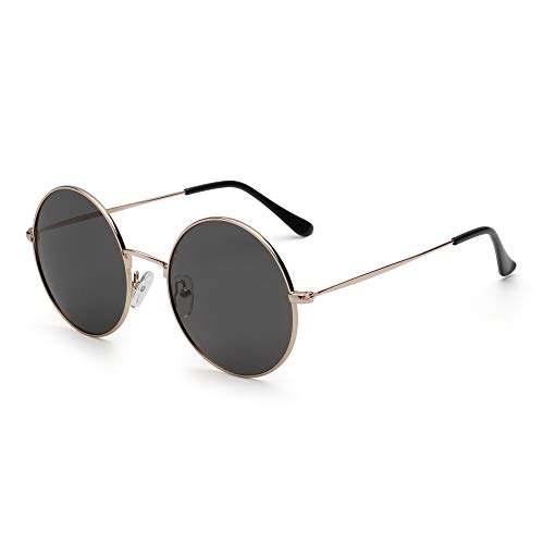 JM Retro Tondo Metallo Occhiali da Sole Donne Maschi Uomo Flash Specchio Riflessivo Cerchio Lente UV400 (Montatura Oro/Lente Grigia Polarizzata)