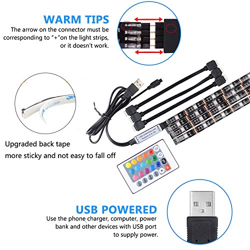 LEN LED TV Retroilluminazione Bias Illuminazione con telecomando, Strisce LED USB 6.56ft 2M 5050 Kit strisce chiare RGB per HDTV da 40 a 60 pollici, desktop, monitor PC