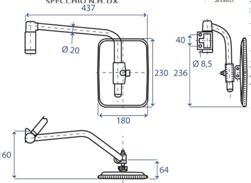 Specchio/specchietto retrovisore esterno sinistro compatibile per trattori new holland