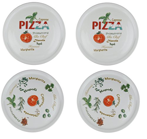 Retsch Arzberg - Set di piatti per pizza con tagliapizza/rotella per pizza, piatto per pizza XXL, diametro 30 cm, con decorazioni, set da 4