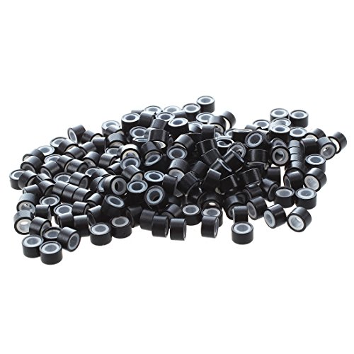RETYLY 200 pezzi 5mm micro-ring in silicone foderato Beads collegamento per l'installazione e le piume io Stick Hair Extension Nero