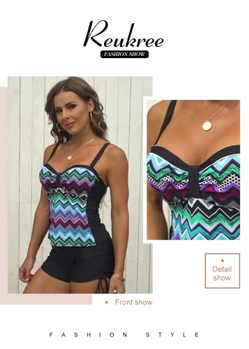 Reukree Set Tankini da Donna Composto da Canotta e Pantaloncini da Bagno, Costume da Bagno in Due Pezzi con Imbottiture, Spallacci Regolabili e Polsini Elastici Regolabili dei Pantaloncini