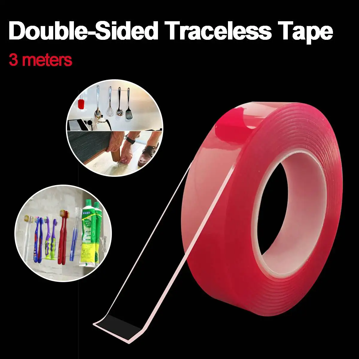 Reusable Double Sided Tape Adhesive 3 Meters Heavy Duty Adhesive Loop Transparent Traceless Tape Clear Washable Remove Sticker