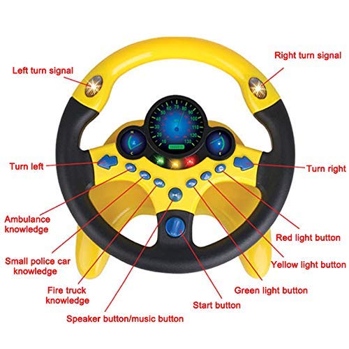 Reuvv Simulazione Volante con Luce Bambini Bimbi Musicale Sviluppa Giocattoli Educativi Compleanno Regali Divertente Bambini Giocattoli, Vari Guida Suoni per Bambini - Giallo, B