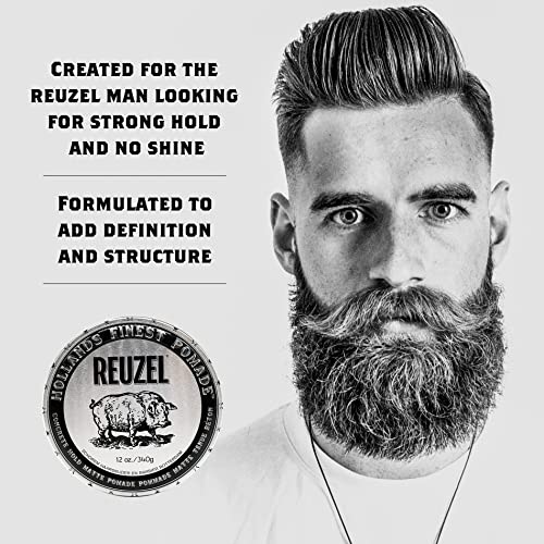 Reuzel Concrete Hold Matte Pomade - Maintain Carefully Groomed Appearance - Makes Hair Polished - Easy And Hassle Free Application- Light Masculine Scent - Sulfate, Paraben, And Cruelty Free - 12 Oz