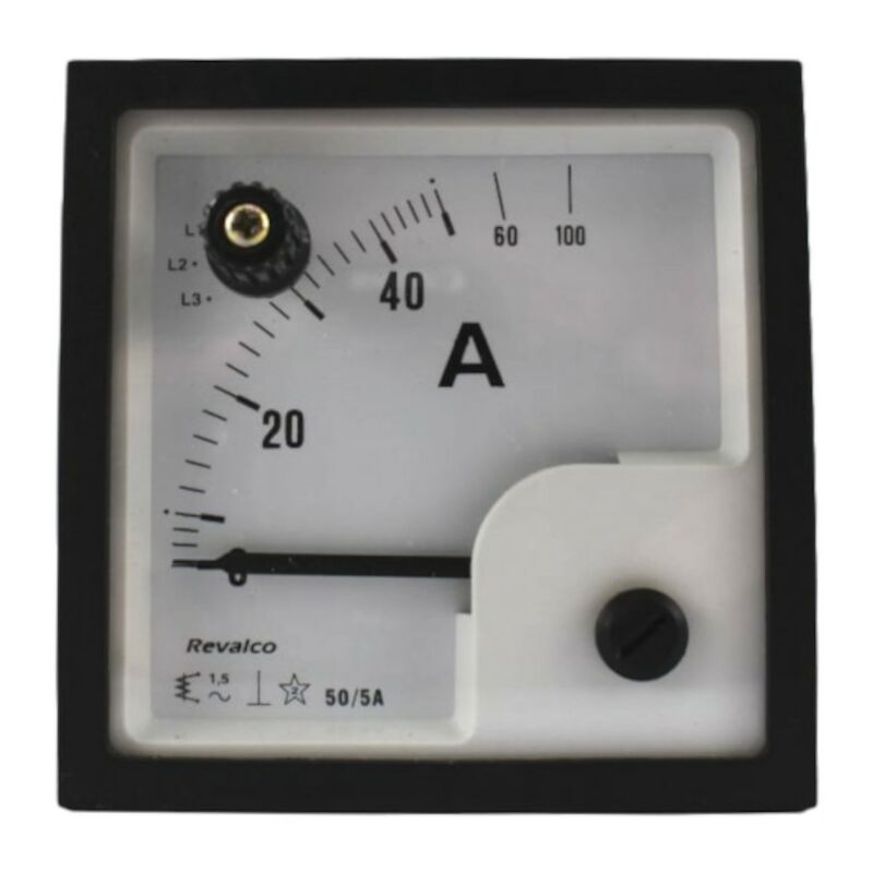 Amperometro Analogico 90 Gradi Re.Val.Co FER.72 50/5A 2IN + Commutatore di fase.