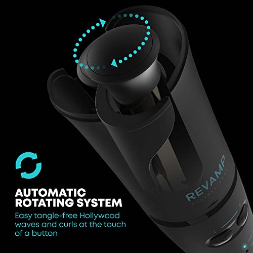 REVAMP Progloss Liberate Autocurler, Arricciacapelli Rotante Automatico Senza Fili in Ceramica con Tecnologia Ionica per Onde e Ricci, Infuso con Oli Protettivi, Temperatura 150°C-210°C, Nero