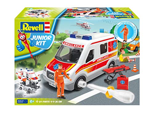Revell- Ambulance Car with Figure Veicolo Giocattolo Junior Kit, Colore Bianco, 00824