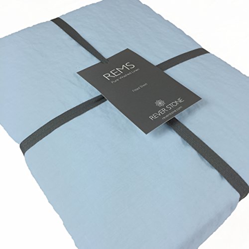 Rever Stone Pure Linen Fitted Sheet (Cloudy Blue, Double)