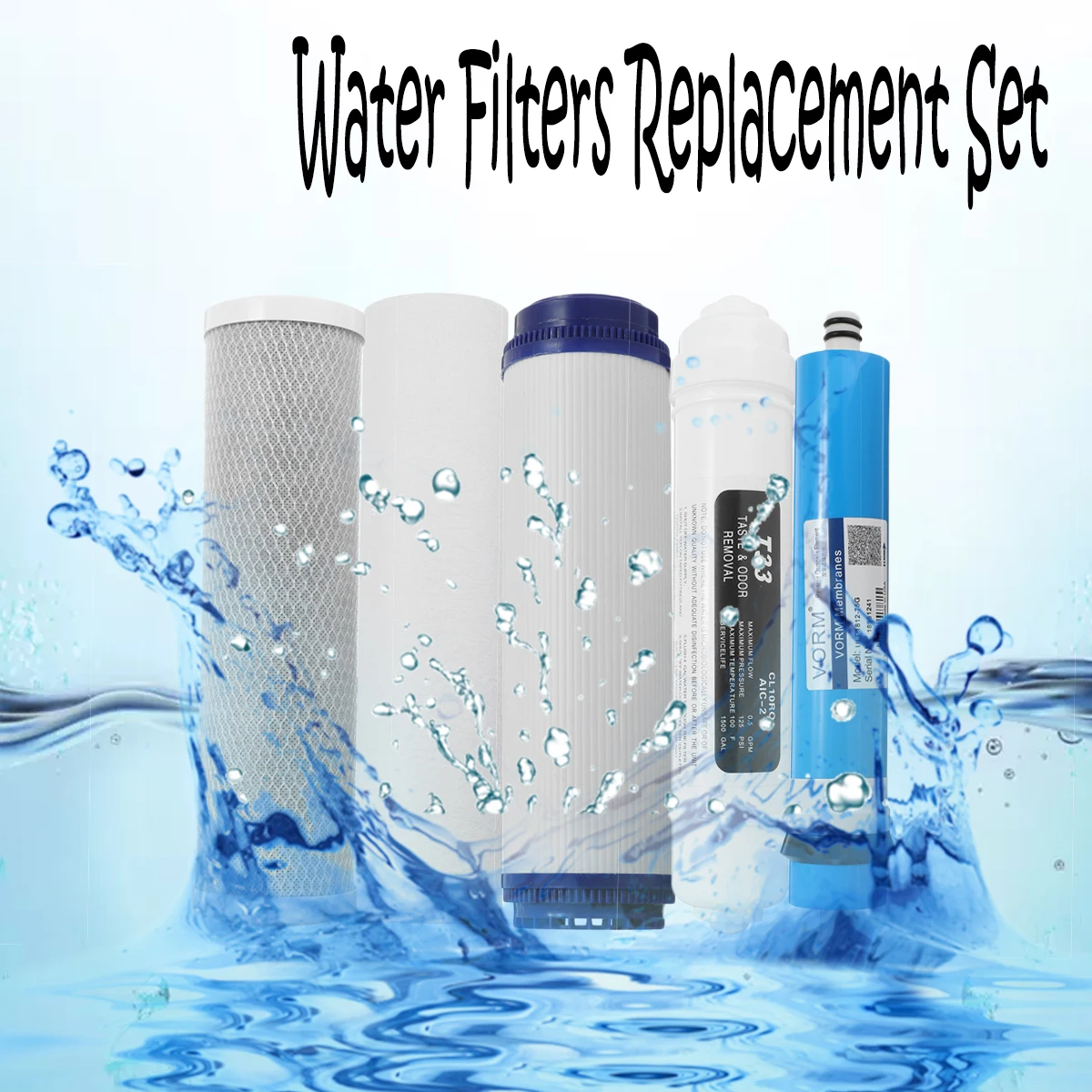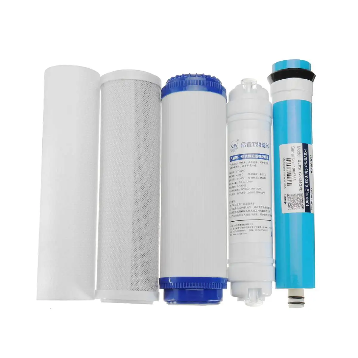 5 Reverse Osmosis RO Water Filters Replacement Set with Water Filter Cartridge 75/100/125GPD Membrane Home Kitchen