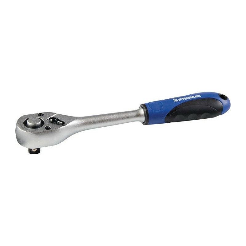 Attacco quadro 10 mm (3/8 pollici) Con impugnatura bicomponente Acciaio CV Cromato opaco Funzione di bloccaggio della presa con rilascio a pulsante Angolo di rotazione posteriore 5° 72 denti DIN 3122 / ISO 3315 Altre caratteristiche tecniche: Materiale: Cromo -acciaio al vanadio