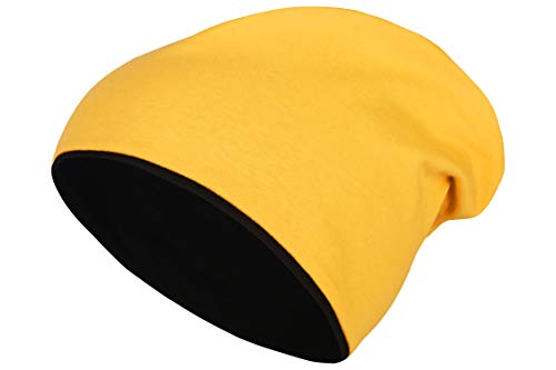 2 in 1 Reversibile Slouch Lungo Beanie Jersey Cotone Elastico Unisex Uomini Signore Cappello Heather in 24 Colori Diversi (8) (Nero/Giallo)