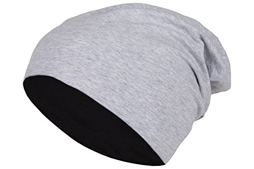2 in 1 Reversibile Slouch Lungo Beanie Jersey Cotone Elastico Unisex Uomini Signore Cappello Heather in 24 Colori Diversi (8) (Grigio Chiaro/Nero)