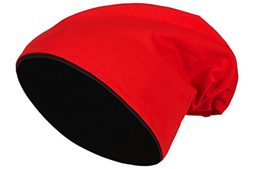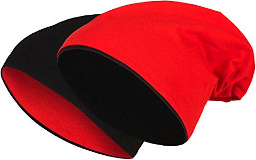 2 in 1 Reversibile Slouch Lungo Beanie Jersey Cotone Elastico Unisex Uomini Signore Cappello Heather in 24 Colori Diversi (8) (Nero/Rosso)