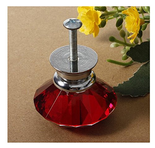 Revesun Pomelli in cristallo per porte, armadi, cassetti, credenze, a forma di diamante, con diametro da 40 mm, confezione da 4 pezzi 40 mm, rosso.