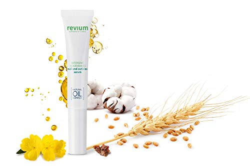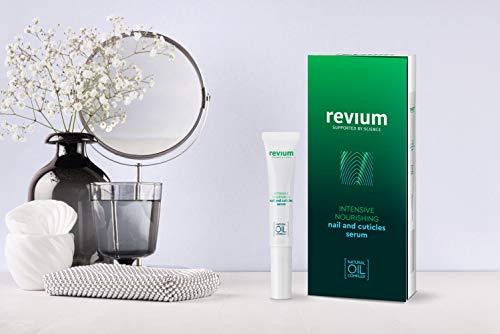 Revium, siero intensivo nutriente per unghie e cuticole, con mirra, olio di semi cotone, mandorla, canola e olio di germe di grano, arricchito con vitamine A-E-F-C, lecitina, 7ml