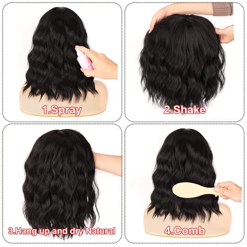 REVIVI Parrucche Bob corte per donne Parrucche ricce nere con frangia Fibra naturale resistente al calore per ragazze Uso quotidiano 14"