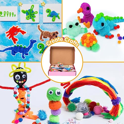 Revivoer Kit Lavoretti Creativi per Bambini, Set Colori per Bricolage Creativo con Oltre 1200+ Pezzi, Giochi Creativi con Bastoncini di Legno Colorati, Piume, Pompon Lampeggianti Inclusi